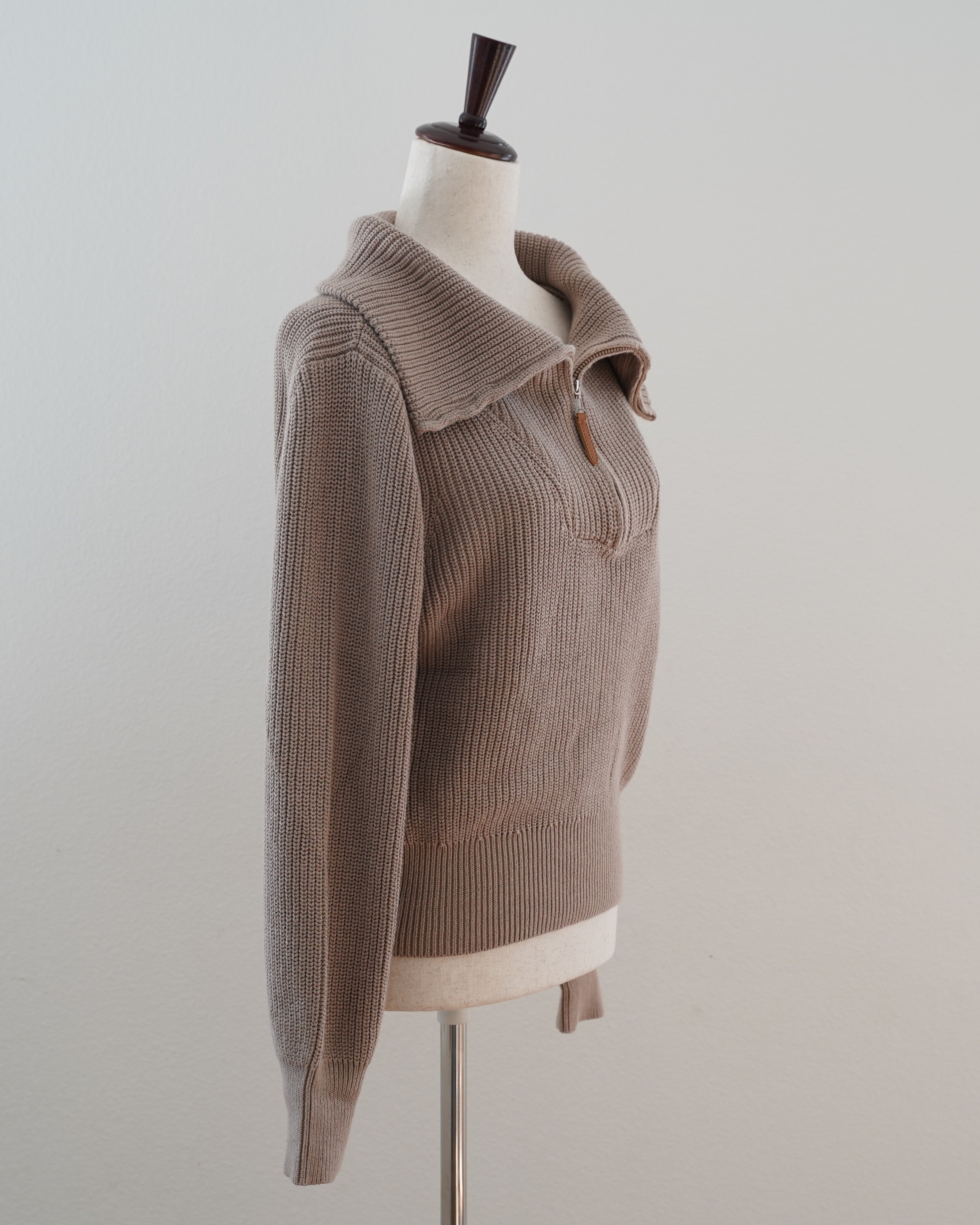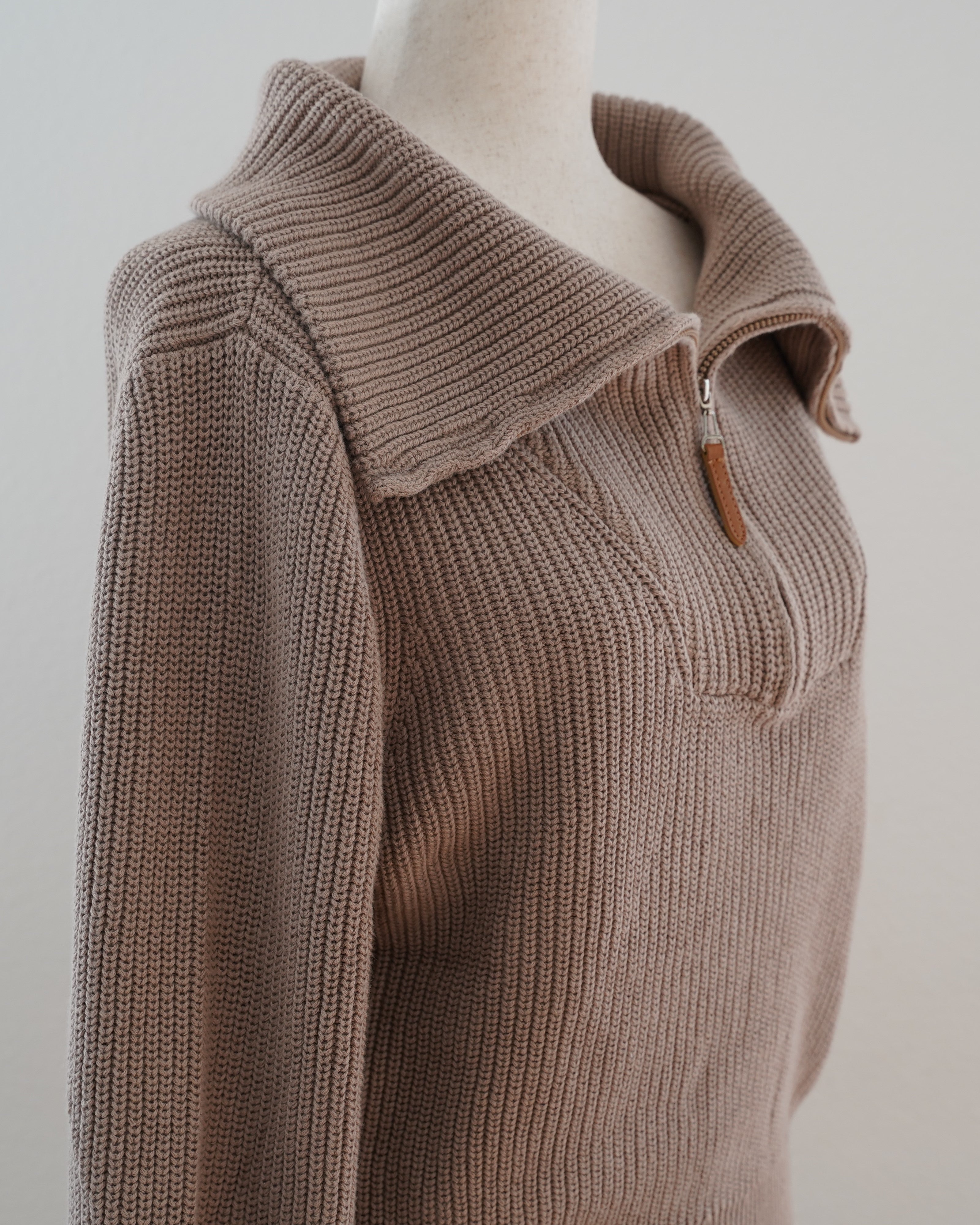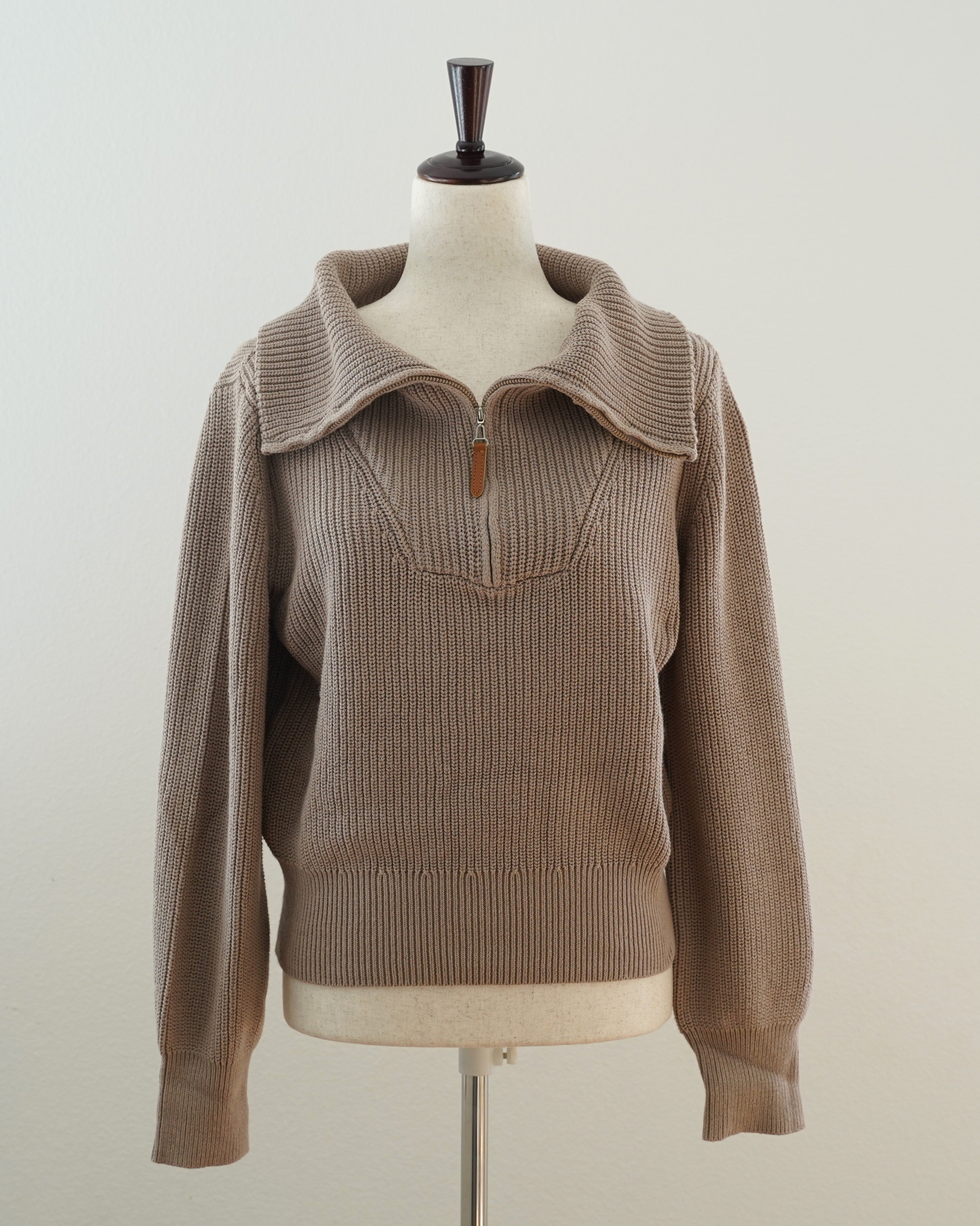 This knit sweater features a half-zipper collar for adjustable warmth and a refined look. Dress it up or keep it casual—this sweater is perfect for those in-between seasons.