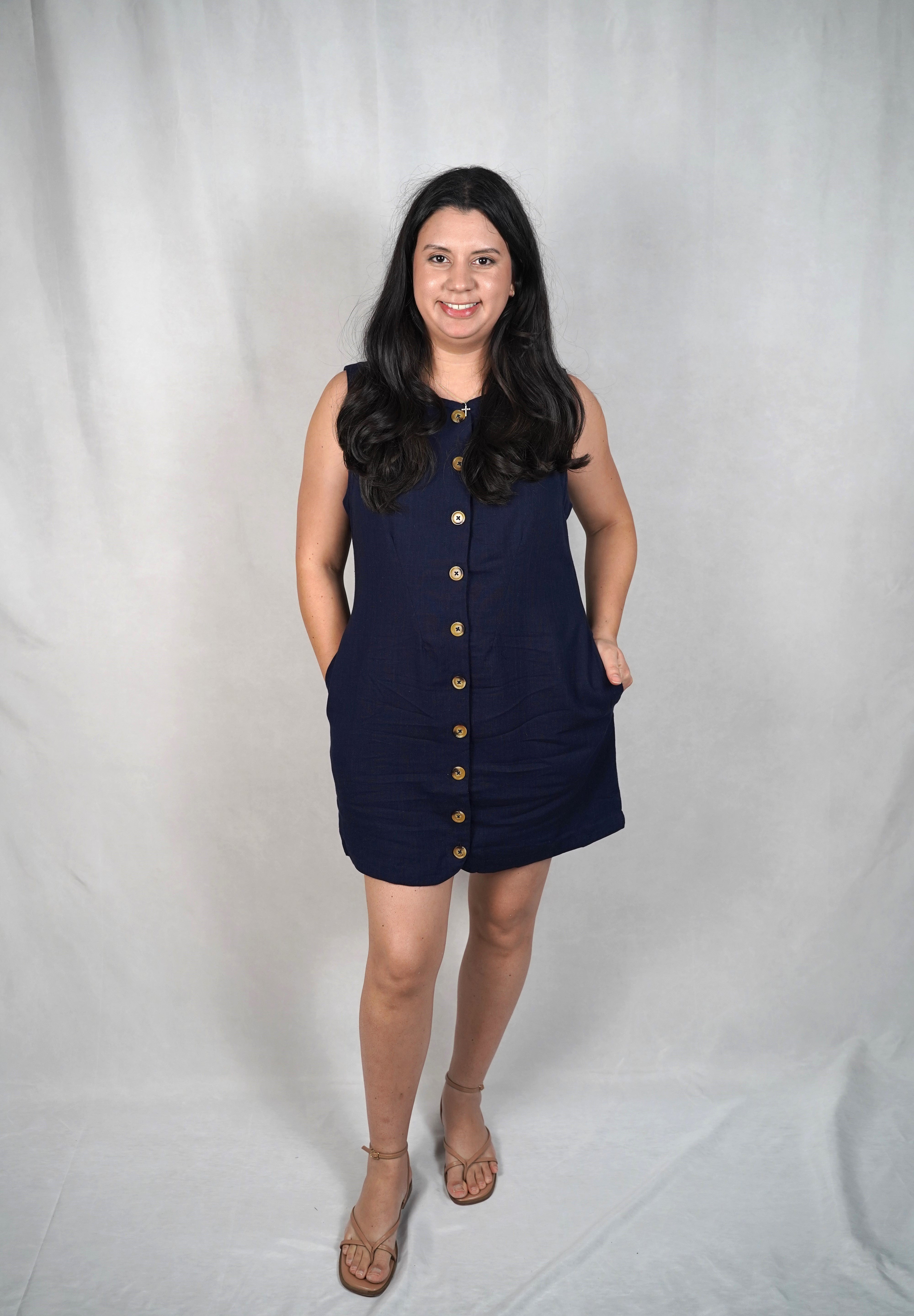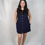 Designed with both ease and style in mind, our Linen Mini Dress is an essential addition to your wardrobe. The cinch tie-back shapes the dress for a refined, flattering fit, while the marbled buttons provide a touch of elegance.